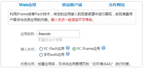 3、先在百度BAE空間上創(chuàng)建一個(gè)應(yīng)用。
