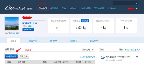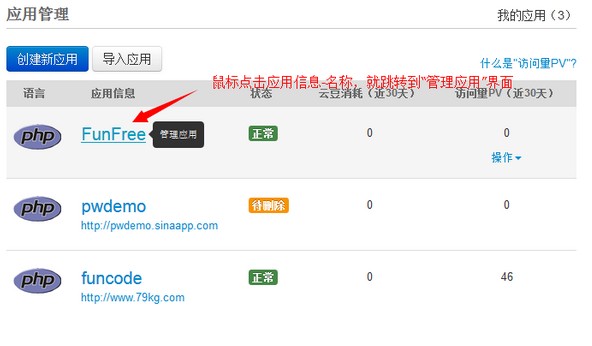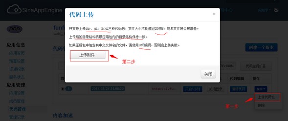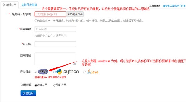 大多數站長在搭建網站的時候都想選擇免費的主機空間練練手,這里推薦新浪的SAE實際上就是個多節點的虛擬主機,跟云主機差不多,只不過SAE的節點比一般的云主機要多,把網站程序布署在SAE上比自己用國外免費的虛擬主機穩定性、性能、和安全方面要高很多。 部署自己的網站(以wordpress為例) 1、新浪SAE平臺地址:http://sae.sina.com.cn 首先注冊用戶,這就不用說了。可以使用新浪微博帳號登錄。2、登錄后,點擊“我的首頁”,然后點擊“創建新應用”。 ![]() 3、根據自己需要填寫應用信息,然后點擊“創建應用”。 ![]() 4、創建好應用后,點擊應用名稱就可以進到對應應用的管理界面。 ![]() 5、進入應用管理界面,點擊左側的“代碼管理”,進入代碼版本控制界面,點擊“創建一個版本”,輸入版本號,默認是1,點擊“創建”。需要輸入安全密碼,就是你帳號的密碼。 ![]() 6、創建完版本后,就能看到以下界面,點擊“操作”,看到“上次代碼包”窗口,需要注意提示信息,必須嚴格按照提示信息來進行。 ![]() 7、初始化mysql