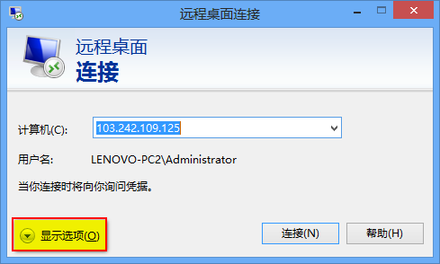 2、在”遠(yuǎn)程桌面連接”窗口右下角,點(diǎn)擊”顯示選項(xiàng)”。