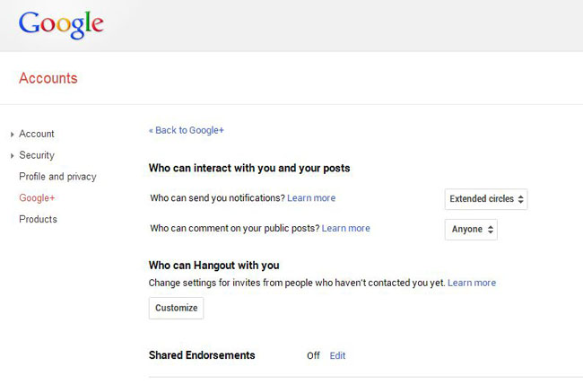 谷歌反復強調一點:用戶始終能夠控制所分享的內容。所以,如果你不喜歡這樣,那么可以進入 Google+ 的 Shared Endorsements setting 里面修改。你只要花一點時間,把該功能關閉即可: