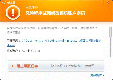 圖6.金山毒霸攔截病毒修改系統(tǒng)賬戶和密碼