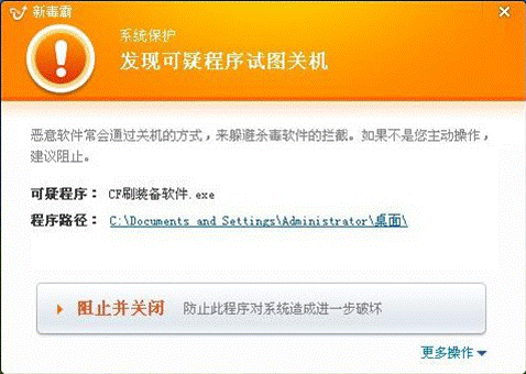 圖7.金山毒霸攔截病毒強制關(guān)機