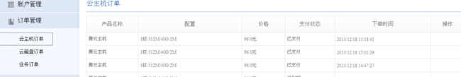用戶管理和訂單管理沒有什么好介紹的了,什么,你不知道?好吧。我就插幾句,用戶管理功能包括賬戶信息、資料修改和修改密碼,訂單管理里面云主機(jī)訂單、云磁盤訂單、業(yè)務(wù)訂單等,這些功能主要可以修改的個(gè)人信息以及查看自己所有產(chǎn)品的購買詳情,知情權(quán)是一個(gè)消費(fèi)者最基本的權(quán)利。