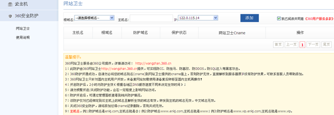 最近,發(fā)現(xiàn)主機(jī)后臺(tái)添加了一個(gè)360安全防護(hù)功能,應(yīng)該是360和IDC商的一個(gè)合作吧。360這幾年的動(dòng)作挺大的,先后建立安全聯(lián)盟推廣自己的產(chǎn)品。360真是一個(gè)讓人既愛又恨的公司,不得不說他們他們安全產(chǎn)品還是很不錯(cuò)的。