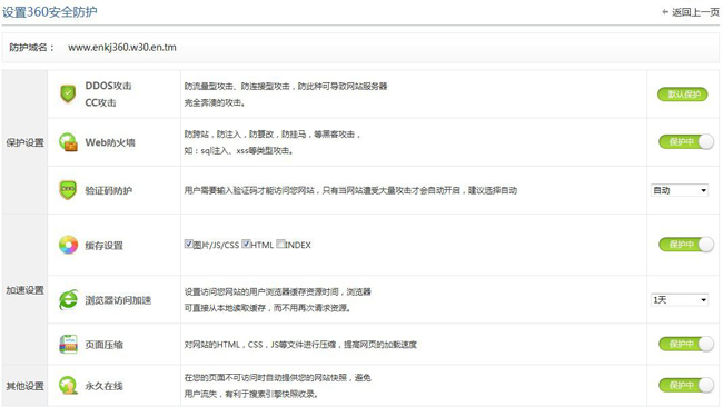 在360防護(hù)后臺(tái),提供了諸如DDOS防攻擊,驗(yàn)證碼防護(hù)等保護(hù)功能,普通的企業(yè)站和個(gè)人站來說,安全防護(hù)已經(jīng)足夠了。