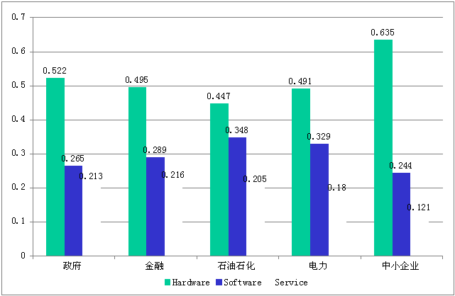 相比較之下,我國IT市場結構仍以硬件采購為主,與國際IT市場現狀差距較大。重建設,輕服務的IT采購習慣亟待轉變。集成商作為IT采購中的核心環節不利于轉變IT采購的市場結構。集成商、設備商與用戶間的利益格局難打破,并且集成商本身缺乏改變目前采購格局的動力。