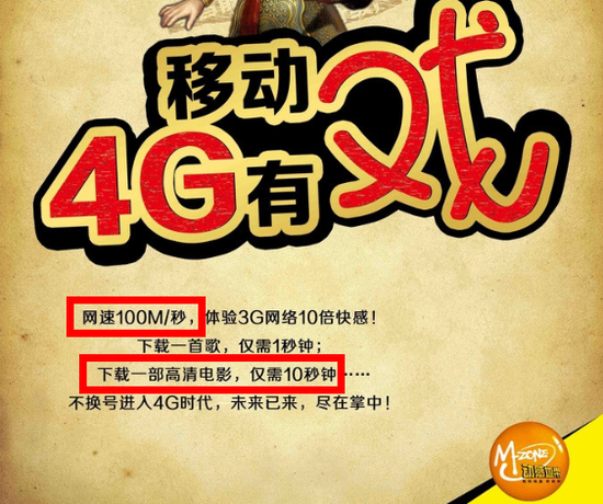 除了各大媒體的報道,三大運營商也不約而同的以100Mbps的下載速度作為宣傳的重點。