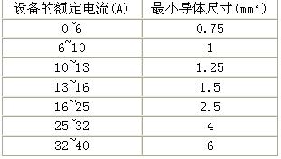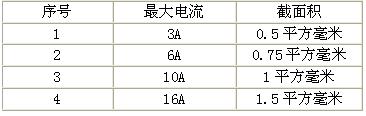 表3:單芯電源軟線導體截面積與載流量對應的關系