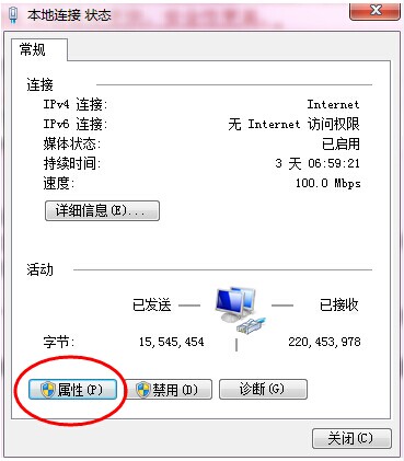 4.點擊“屬性“按鈕,Windows 7 可能會提示請求網絡設置更改的權限。