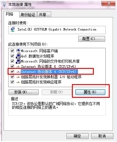 5.選中“Internet協議版本4(TCP/IPv4)”選項,然后單擊“屬性”。