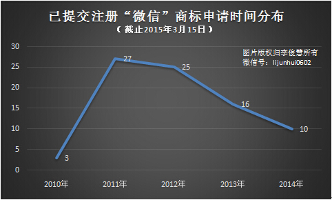 6、商標“搶注”集中發生在“微信”面世首年