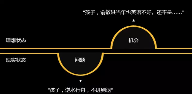 一種方法是降低一個人的現實狀態,讓一個人意識到“問題”,比如說“孩子啊,逆水行舟,不進則退”。