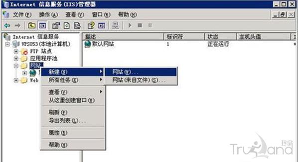 1、打開IIS管理器,“網(wǎng)站”右鍵,新建-> 網(wǎng)站