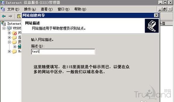 3、網(wǎng)站描述,一般我們寫網(wǎng)站域名,它是網(wǎng)站在IIS里面的標(biāo)示(名稱)