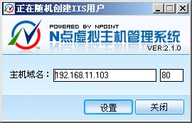 6、安裝完成后運行桌面上的N點配置工具、運行N點虛擬主機管理系統設置好您的主機域名和端口號創建IIS用戶
