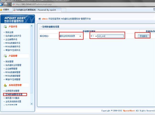 8、如需開通某些服務或者穿件存放地址,必須進行空間存放路徑設置,否則無法開通。