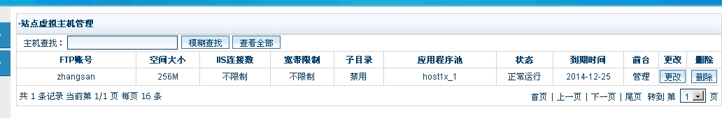 1、站點虛擬主機管理使得管理員可以輕松的對虛擬主機FTP賬號進行管理。