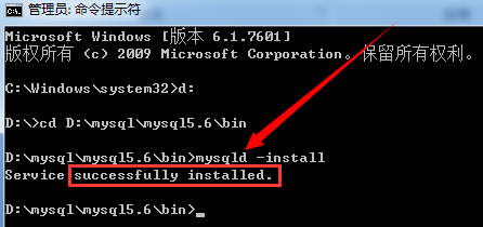 管理員權(quán)限打開控制臺(tái),找到安裝Mysql的bin目錄,然后使用mysqld –install命令安裝,如下圖安裝成功:
