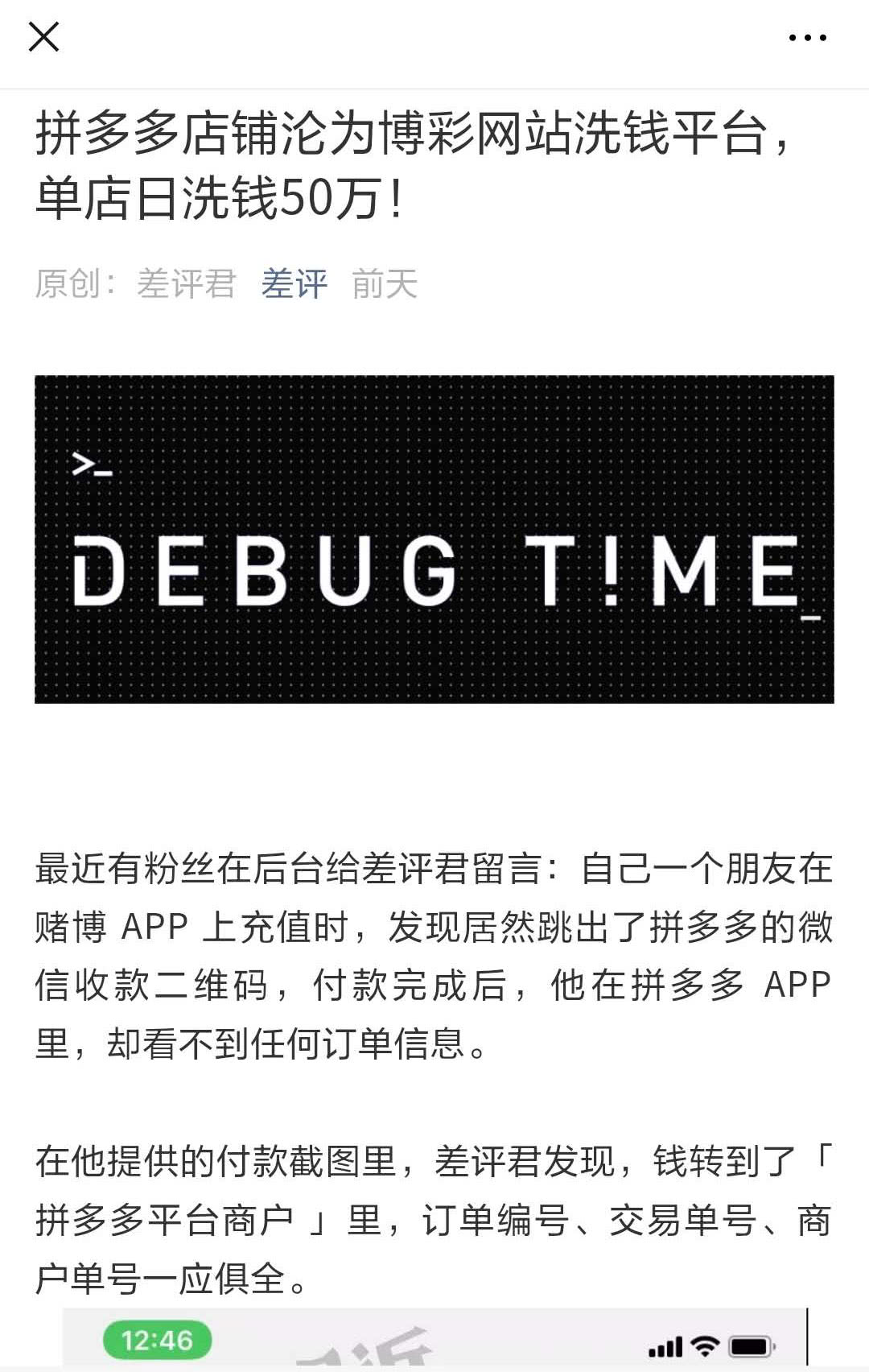 風(fēng)控負(fù)責(zé)人表示:差評這位寫手將拼多多作為了“線上洗錢”的主流渠道和博彩網(wǎng)站收款的“支付通道”,既犯了常識性錯(cuò)誤(拼多多不涉及任何支付通道行為)又對平臺(tái)進(jìn)行了“觀點(diǎn)先行”之后的精心惡意中傷。
