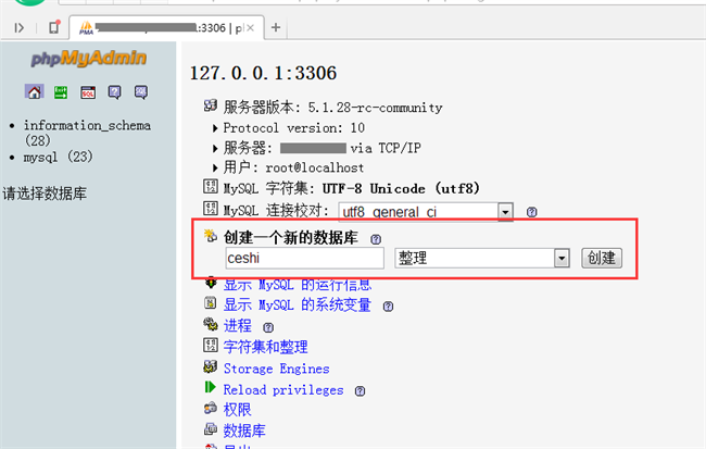 第一步,登錄phpmyadmin圖形管理工具,然后,在MySQL中創(chuàng)建新的數(shù)據(jù)表,這里僅以新建一個(gè)數(shù)據(jù)庫(kù)ceshi的形式演示。這個(gè)比較簡(jiǎn)單就不詳細(xì)介紹了,直接上圖: