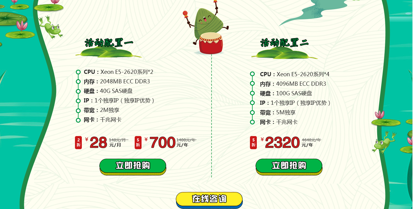 時值收種的季節,又臨近我國的傳統節日--端午節,值此佳節,億恩科技為了回饋廣大新老客戶對本公司的長期支持,特推出端午節云主機鉅惠活動。活動期間凡是前來選購億恩云主機的新老客戶,均能享受活動價。