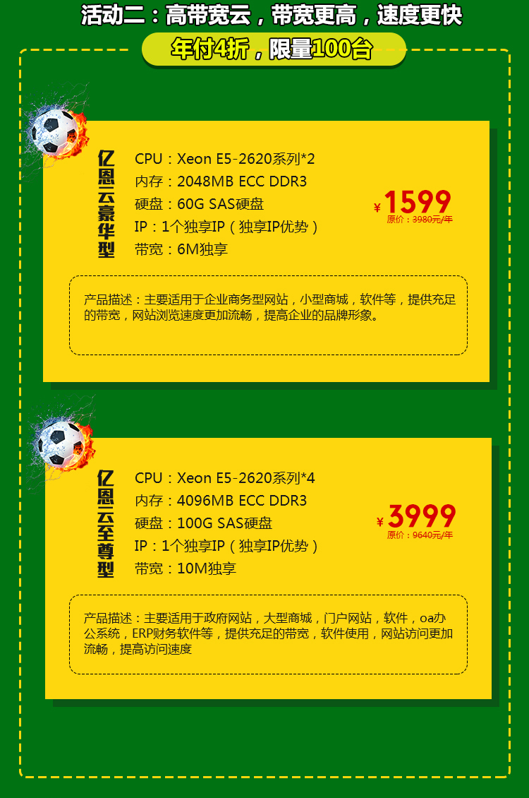 活動二:高帶寬云,帶寬更高,速度更快,年付4折,限量100臺