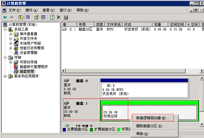 5.再次右鍵點擊磁盤,選擇新建邏輯驅(qū)動器.出現(xiàn)下圖: