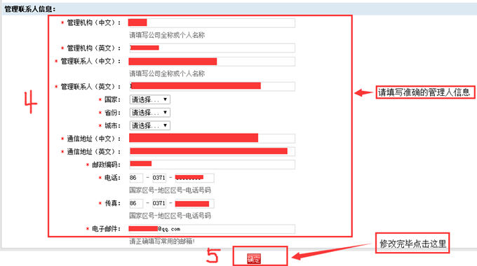 8、修改管理聯系人信息,點擊【確定】完成設置。