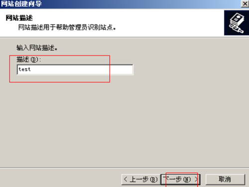 3、輸入網(wǎng)址描述中填寫網(wǎng)站描述后單擊下一步
